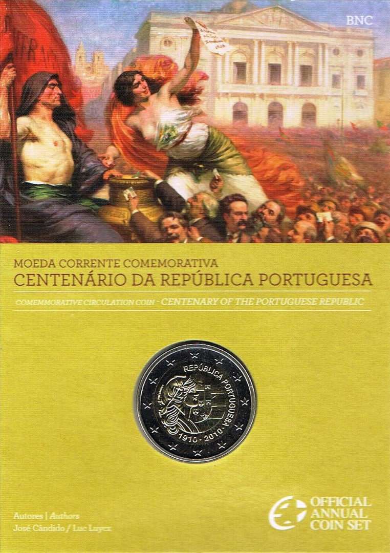 2 euro 2010. Portugal. 100th anniversary of the Portuguese Republic BU