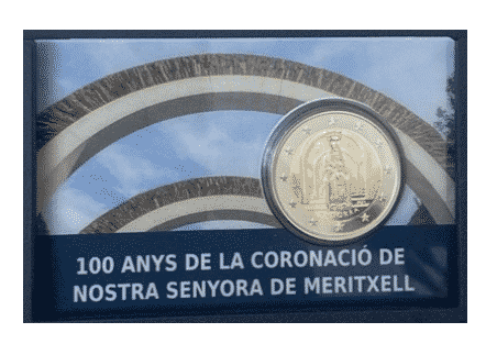 The 2 euro coin is dedicated to the 100th anniversary of the cononic coronation of the Virgin Mary as the patron saint of Andorra (September 8, 1921). Our Lady of Meritchell (in Catalan: Nostra Senyora de Meritxell) – was officially declared the patroness of Andorra back in 1873, and on September 8, 1921, the solemn coronation of the image of the Virgin of Mericell took place in accordance with all the canons of the Catholic Church and since then this day is celebrated as a national holiday of Andorra.