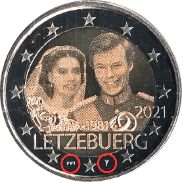 2 euros Luxembourg 2021 – 40 years since the wedding of Grand Duke Henri and Grand Duchess Marie-Theresa (photo version, Bridge mintmark)