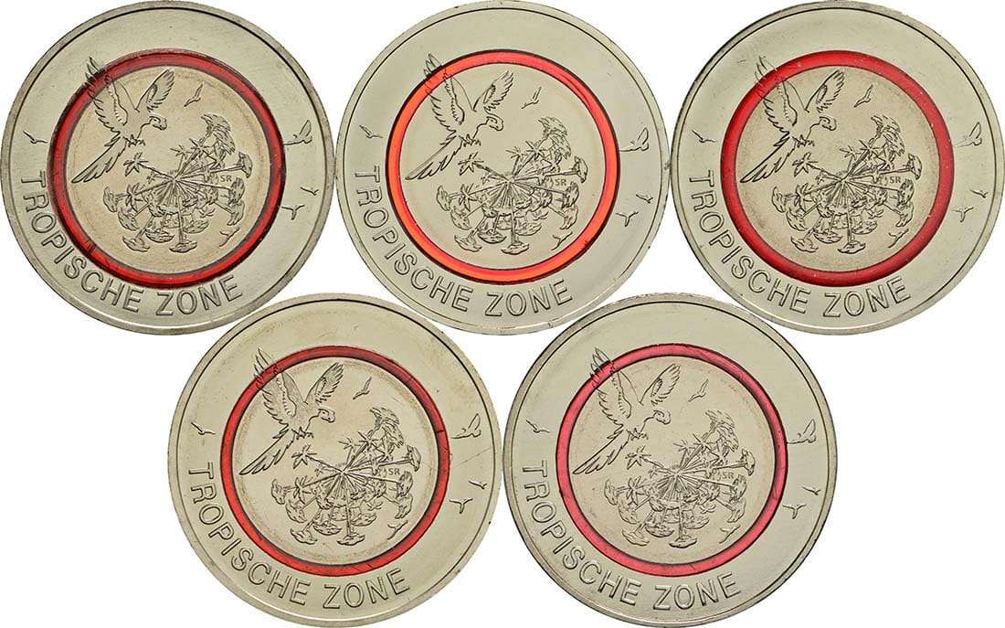 5 Euro Germany 2017 – Tropical Zone (set of 5 letters A, D, F, G, J)