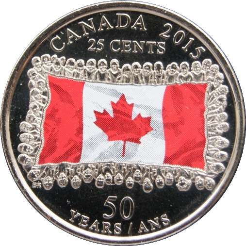 Colored coin 25 cents Canada 2015 – 50th Anniversary of the Canadian National Flag