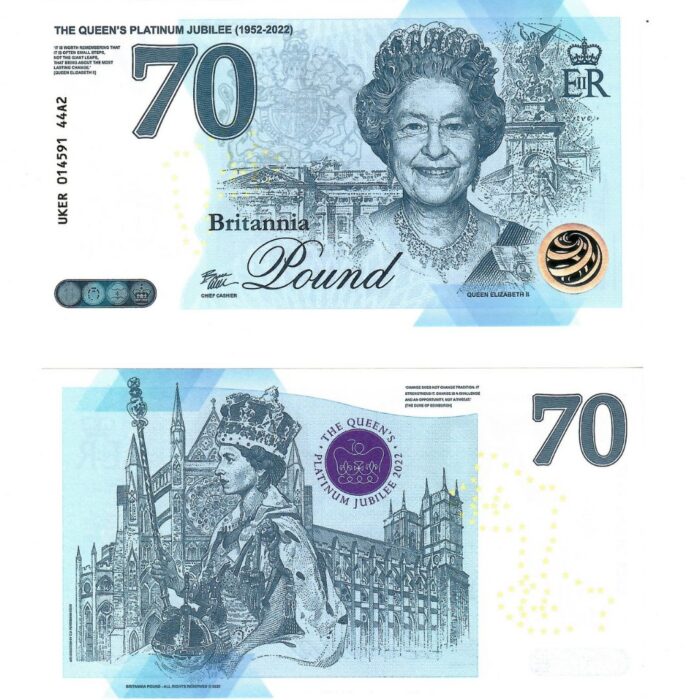The Queen Elizabeth II 70 Platinum Jubilee Banknote is a unique commemorative banknote dedicated to a significant date – the 70th anniversary of the accession to the throne of Her Majesty Queen Elizabeth II.