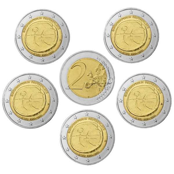 2 euros 2009. 10 años de la Unión Económica y Monetaria, Alemania (A,D,F,G,J)