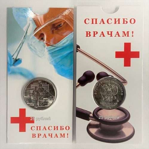 Blister con una moneda 25 rublos 2020g «Moneda conmemorativa dedicada al trabajo desinteresado de los trabajadores médicos»