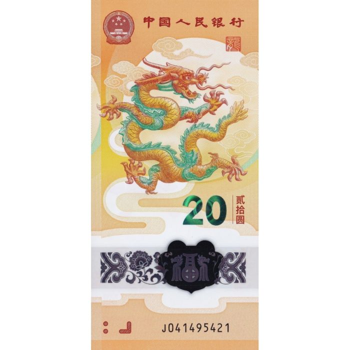 Billete de 20 yuanes conmemorativo del año del Dragón 2024.