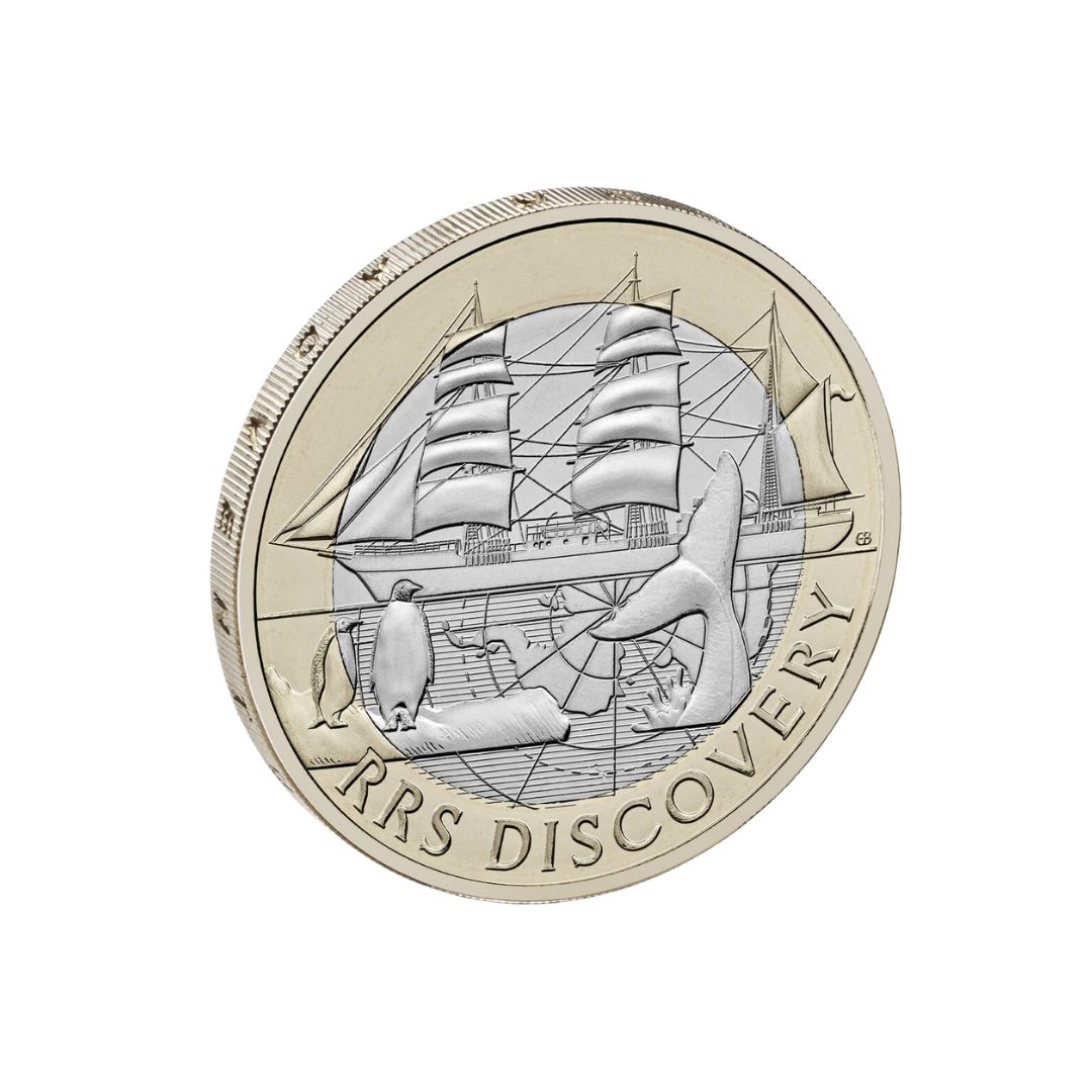 Por primera vez, el RRS Discovery ha sido conmemorado en una moneda del Reino Unido para celebrar su increíble legado como el primer buque de investigación construido específicamente para ese fin y el último barco de madera tradicional de su tipo en el Reino Unido.