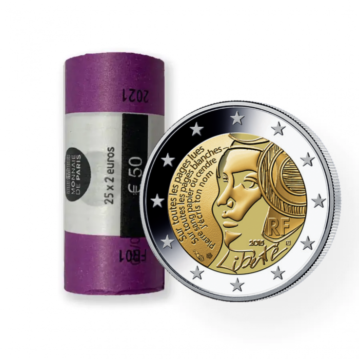 Kolikossa on Mariannen profiili, Ranskan tasavallan symboli. Hänellä on päässään frygialainen lippis – vapauden symboli. Vasemmalla puolella puoliympyrässä on lyöty rivit Paul Eluardin runosta ”Freedom”.