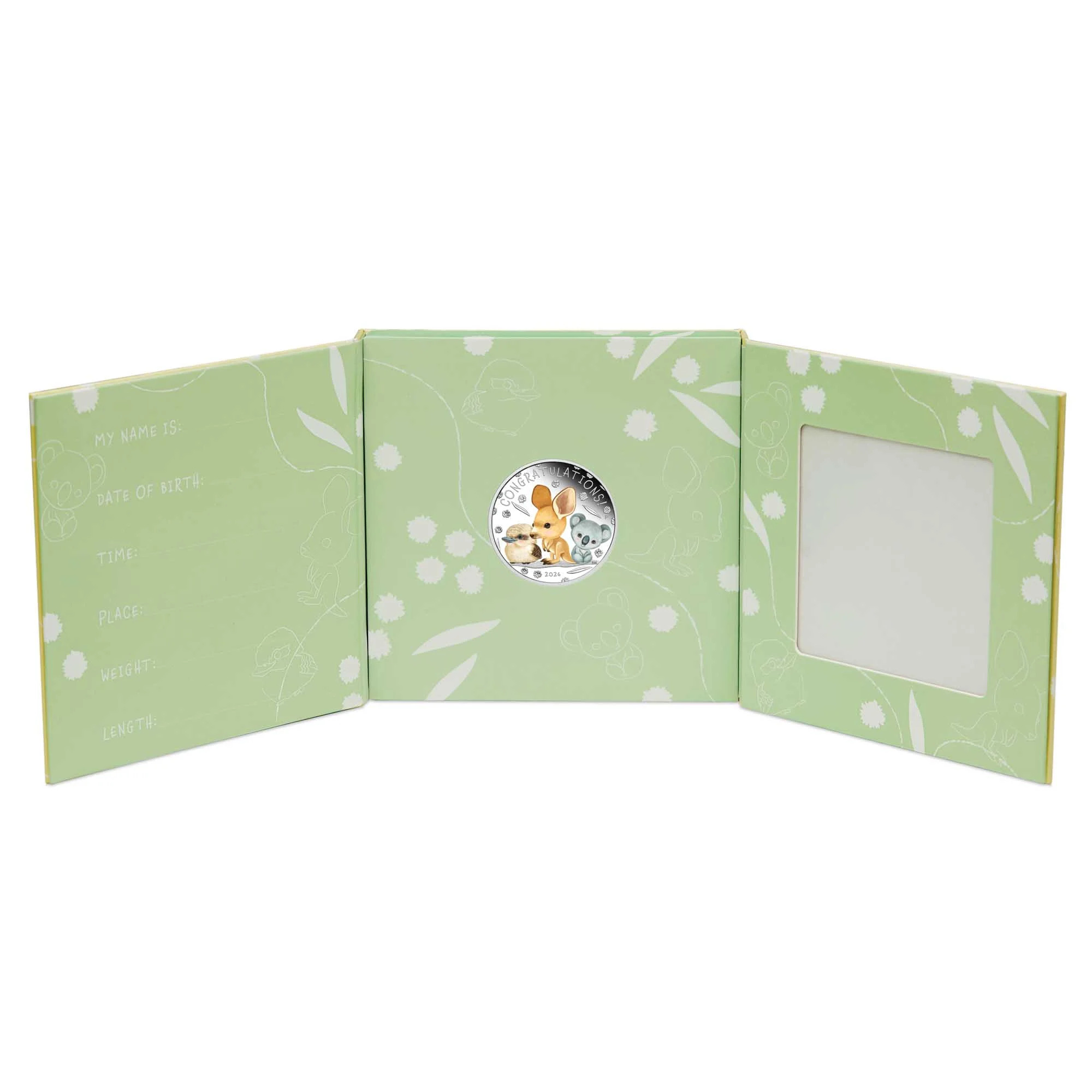 Sanomaton ilo vastasyntyneen syntymästä ansaitsee ajattoman lahjan. Tilaisuuden kunniaksi Perth Mint (Australia) esitteli värikkään ”Tervetuloa maailmaan!” Kolikossa on erityinen lahjapakkaus, jossa on paikka vauvan valokuvalle. Kolikon vieressä on paikka, johon merkitään vauvan syntymäpaikka ja -aika, paino ja pituus.