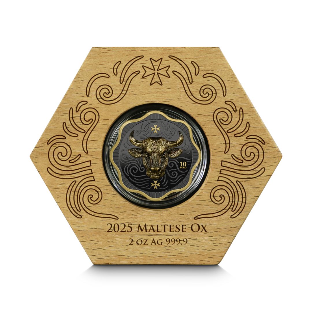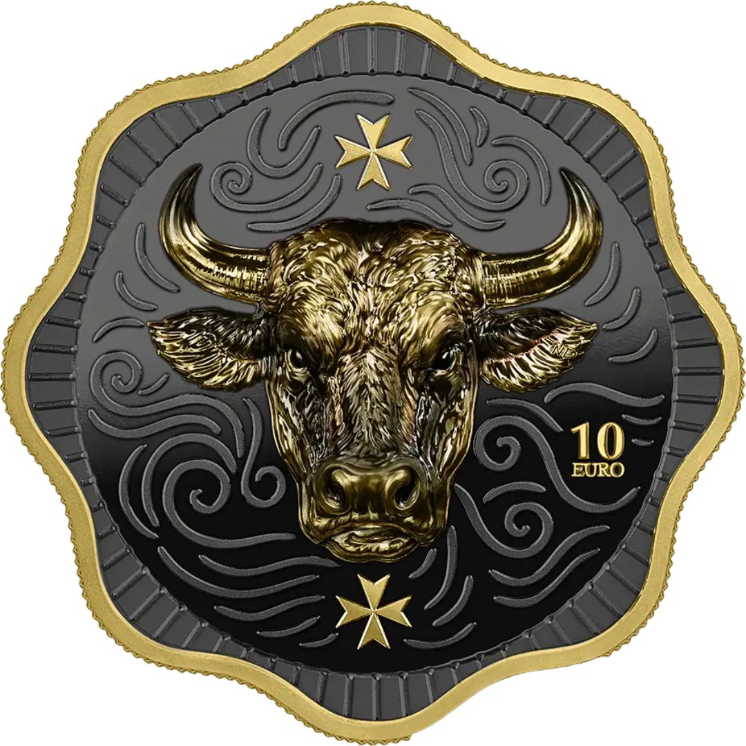 10 euron hopearaha Malta 2025 – Maltan härkä BU, korkeareliefi