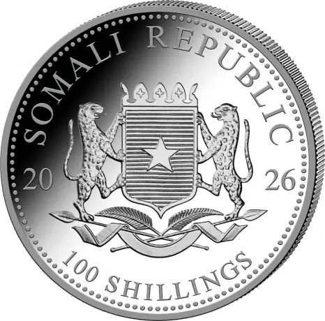 Hopeakolikko 100 shillinkiä Somalian 2026 – Somalian elefantti