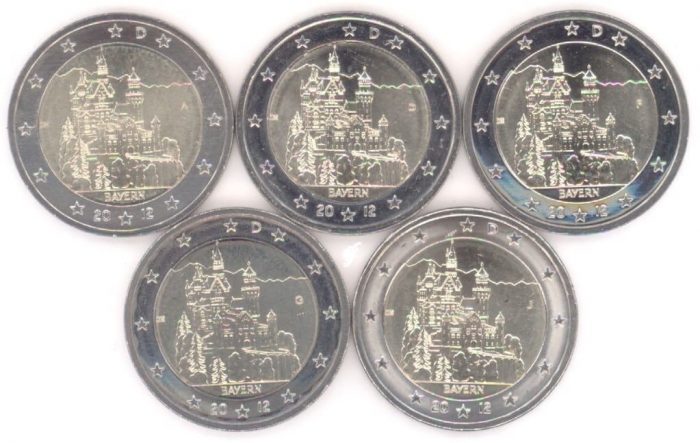 2 euro 2012. Germania. Baviera, Castello di Neuschwanstein (A,D,F,G,J)