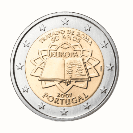 Il lato tematico contiene la scritta “PRESIDENCIA DO CONSELHO da UNIAO EUROPEIA PORTUGAL”, che indica il motivo dell’emissione della moneta bimetallica. Il disegno contiene un grafico con raggi che vanno in direzioni diverse. Pertanto, il Portogallo ha deciso di perpetuare i legami tradizionali con altri paesi membri dell’Unione europea.