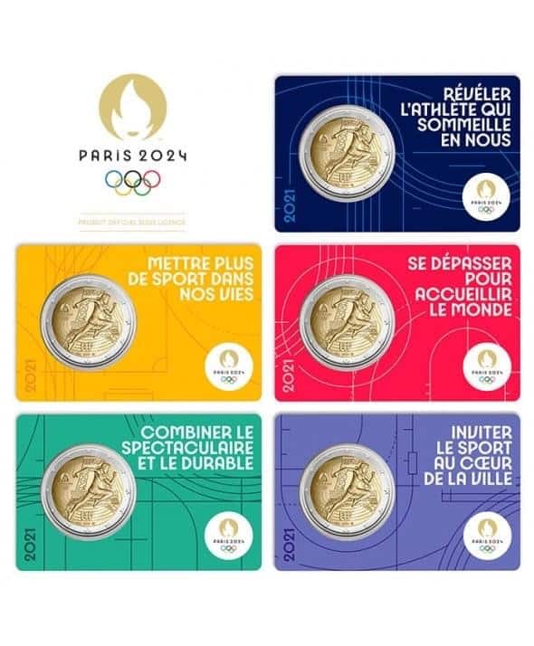 Monnaie de Paris ha presentato la seconda moneta francese commemorativa 2021 euro da 2 euro. Il tema della prima delle quattro monete della serie delle Olimpiadi estive di Parigi 2024 è Presentazione della bandiera olimpica. Il dritto presenta un atleta in primo piano, la Torre Eiffel e l’atletica leggera sullo sfondo con il logo dei Giochi Olimpici di Parigi 2024. Sulla moneta sono indicati anche il paese di emissione, l’anno di emissione, il marchio della zecca e del designer francesi – Joaquin Jimenez.