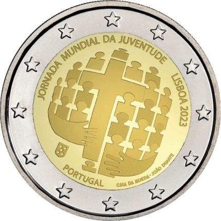 La squadra portoghese parteciperà ai XXXIII Giochi Olimpici estivi di Parigi nel 2024. Gli atleti portoghesi portano un messaggio d’amore al mondo, rappresentando il Paese con determinazione e passione. La moneta commemorativa presenta un cuore formato da figure stilizzate che simboleggiano l’unione e gli ideali nobili, oltre a ricordare le tradizioni artigianali portoghesi. Il design mette in risalto il simbolo del Comitato Olimpico Portoghese e l’unione di sportività e nobili ideali.