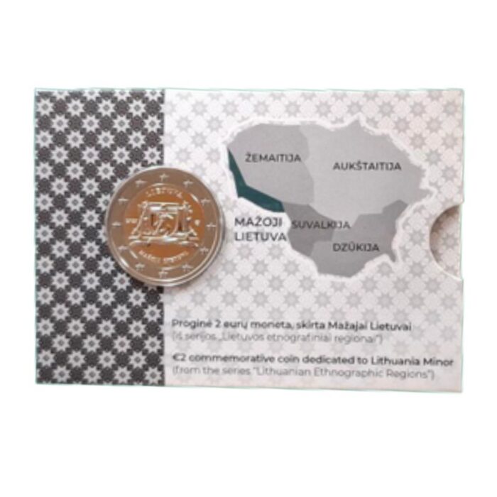 Questa moneta è emessa in onore della Lituania Minore, una regione etnografica unica al mondo. Questa terra storica dei popoli baltici, situata tra il fiume Pregola e il corso inferiore del fiume Nemunas, è sempre stata la porta d’accesso a un mondo in cui si intrecciano culture diverse e regna uno spirito unico. Qui hanno avuto origine canzoni popolari uniche, così come una ricca tradizione tipografica che ha contribuito a preservare la lingua lituana anche nelle condizioni più difficili. La Lituania Minore affascina con il suo patrimonio storico unico e la sua vibrante visione di un futuro luminoso.