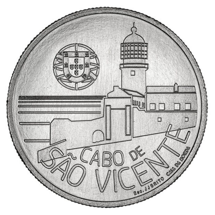Questa moneta, disegnata da José João de Brito, inaugura la serie “Fari portoghesi” e commemora il faro di Cabo de São Vicente, operativo dal 1846. Dopo un periodo iniziale di attività, il faro fu abbandonato e rischiò di cadere in rovina. Tuttavia, dopo 11 anni di lavori di ristrutturazione, fu ripristinato nel 1908.
