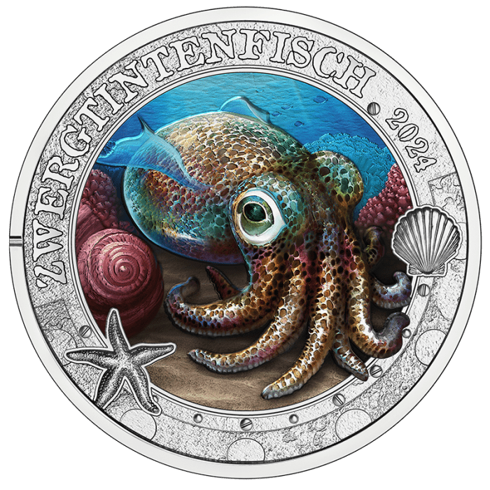 Rotolo di moneta colorata 3 euro Austria 2024 – Vibrante vita marina “Calamaro Hawaiano”