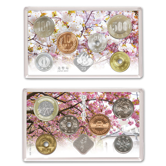 Годовой набор монет Японии 2023 года состоит из 6 монет номиналами 1, 5, 10, 50, 100 и 500 йен, а также серебряной медали с уникальным дизайном 2023 года — год Кролика.