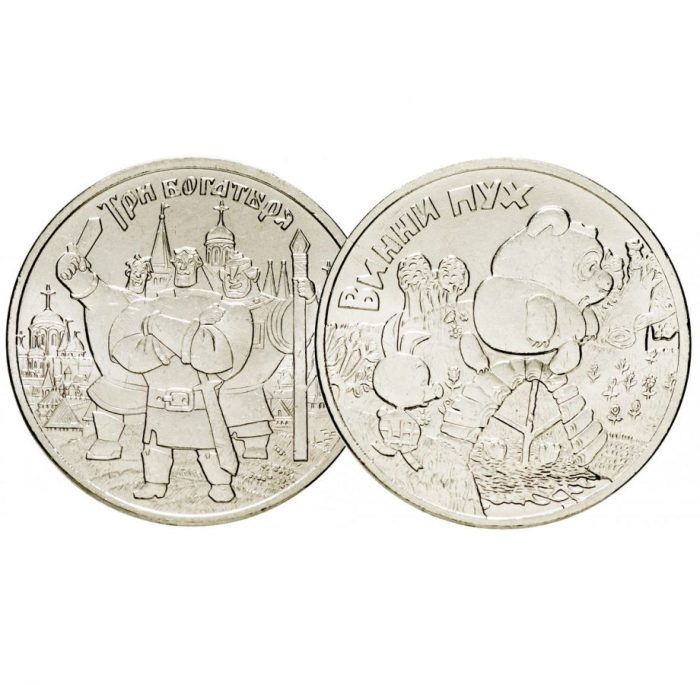 Россия. Мультфильмы. 25 рублей. Три богатыря и Винни Пух. 2017 год