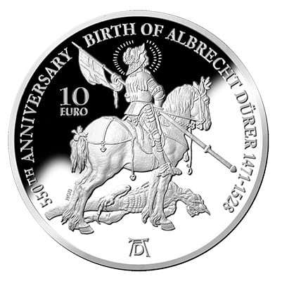 Серебряная монета, посвященная 550-летию со дня рождения художника Альбрехта.