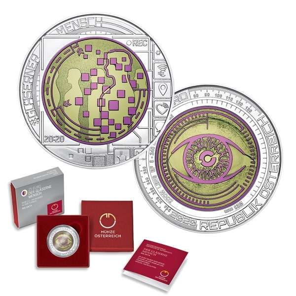 Серебро 25 евро Австрия 2020 г — Тотальная слежка