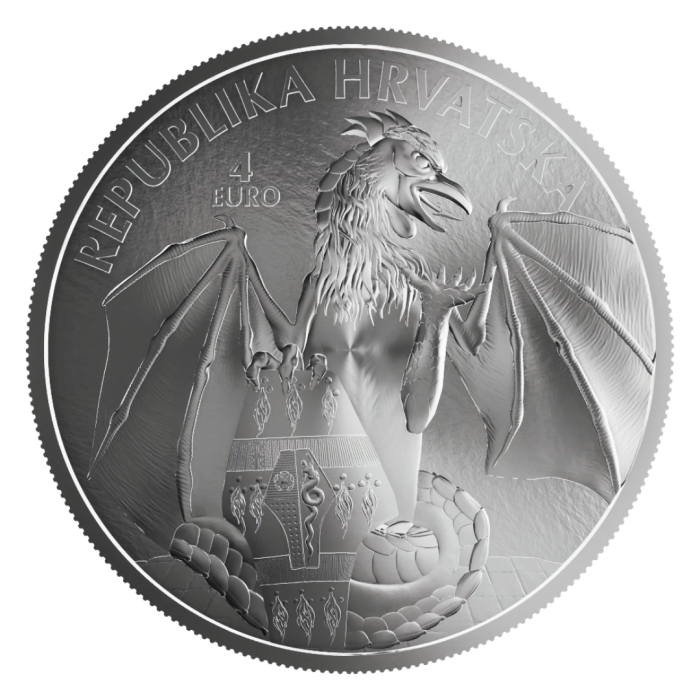 Серебряная монета €4 Хорватия 2024 – Дракон Трсата