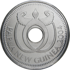На аверсе монеты расположен герб Папуа-Новой Гвинеи с изображением райской птицы, под ним указан номинал «1 Kina».