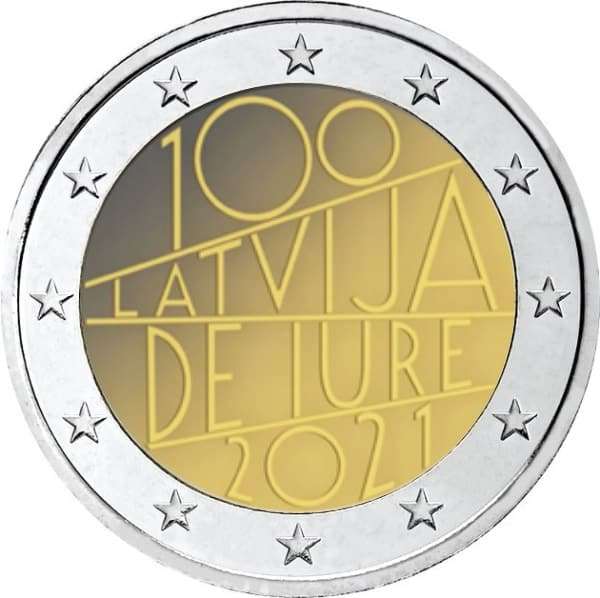 2 euro Läti 2021 BU – Läti Vabariigi tunnustamise 100. Aastapäev (kapslis)