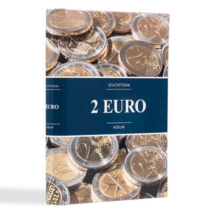 Praktiline album 2 euro müntidele. Album mahutab 48 münti: 6 lehte, millest igaühele mahub 8 münti.