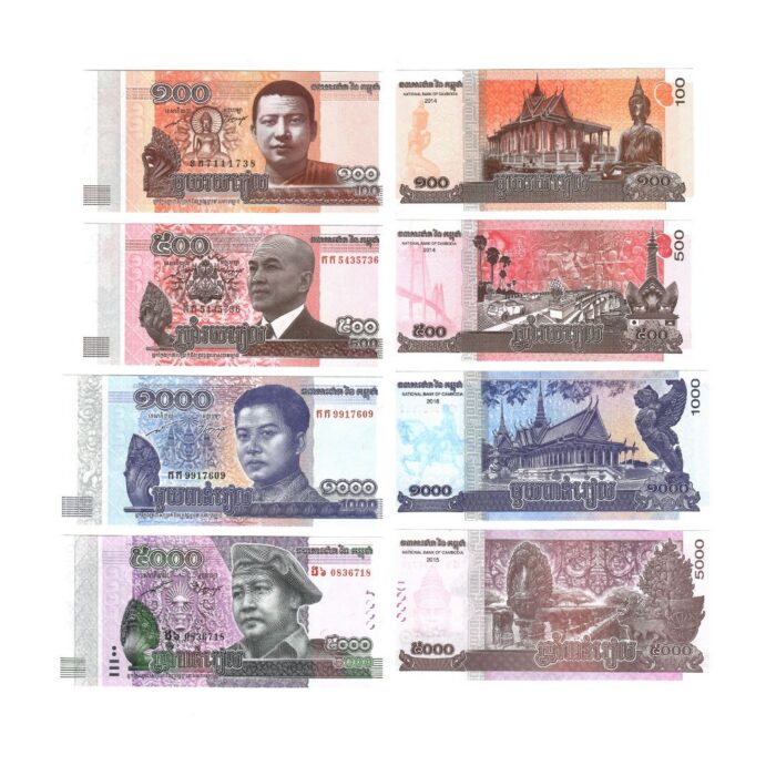 Komplekt koosneb neljast rahatähest nimiväärtusega 100, 500, 1000 ja 5000 Kambodža rieli.
