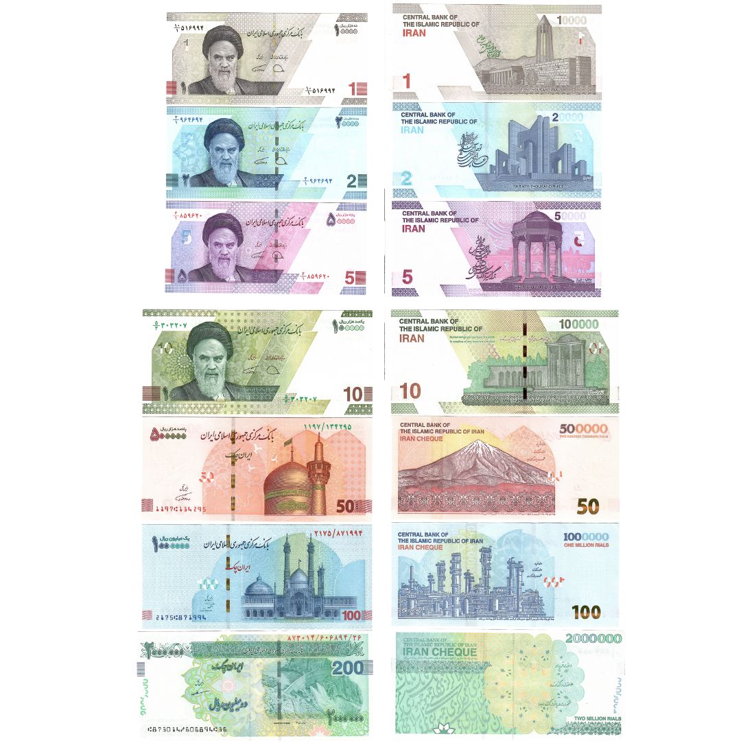 Komplekt koosneb 7 rahatähest nimiväärtusega 1, 2, 5, 10, 50, 100 ja 200 Iraani riaali.
