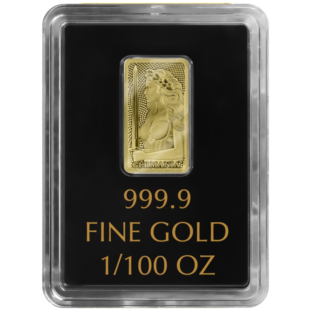 Kuldne investeerimisplaat Germania kujutisega, valmistatud Germany Mint’i rahapajas on ideaalne investeering kollektsionääridele ja investoritele, ühendades ajatu minimalistliku disaini ning kõrgeima prooviga kulla laitmatu puhtuse.