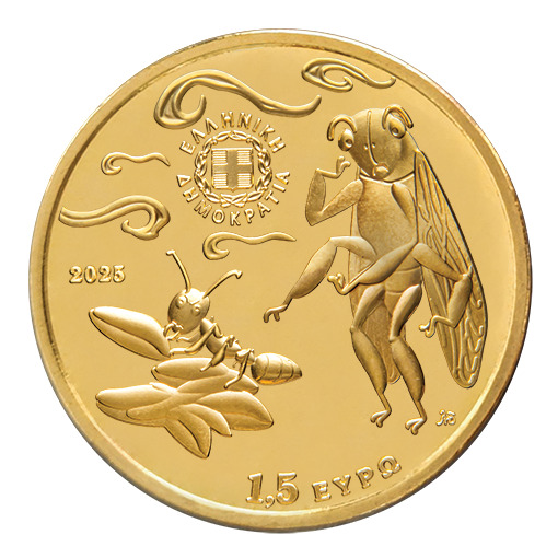 Kreeka 1,5 eurot 2025 – Aisopose valmistused: Tsikaad ja sipelgas