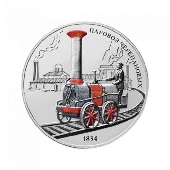 Hõbemünt 3 rubla Venemaa 2021 – Tšerepanovsi auruvedur