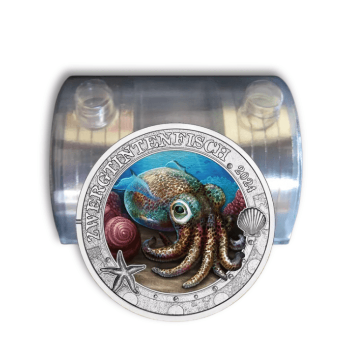 Värviline 3-eurone münt Austria 2024 – Helendav mereelu "Hawaii kalmaar"